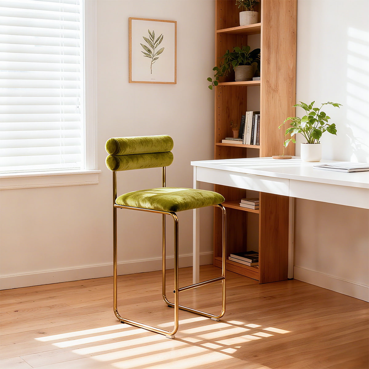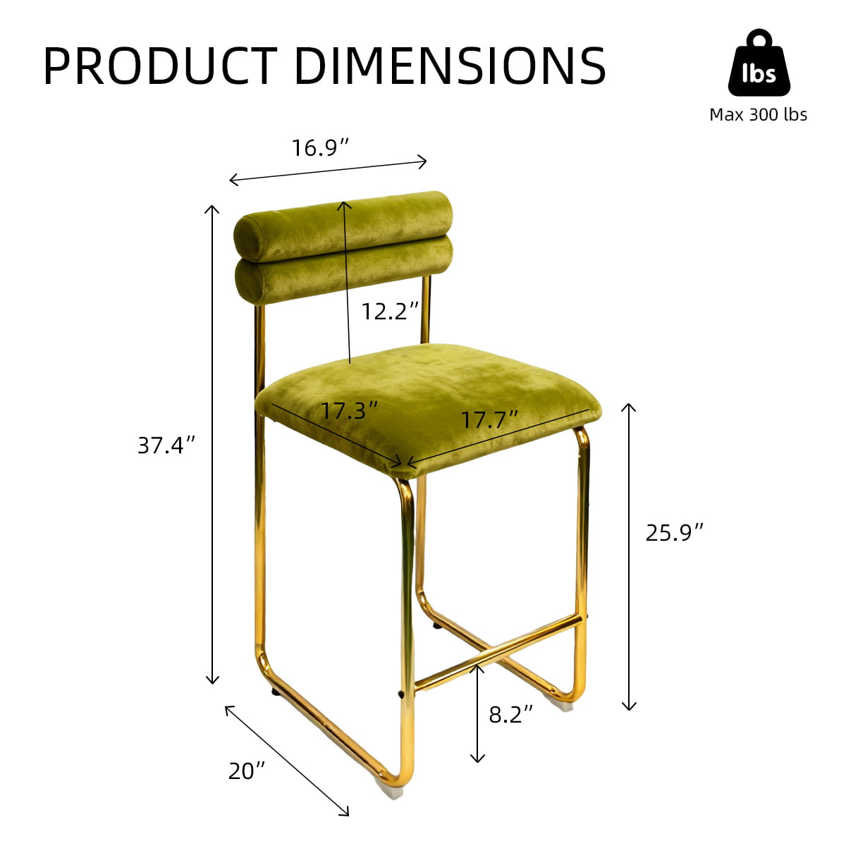 Jego wysokość 37,4 cala pasuje do standardowych blatów kuchennych i barów, a siedzisko o przekątnej 25,9 cala zapewnia optymalny komfort podczas długich rozmów lub swobodnego spożywania posiłków. Miękka aksamitna tapicerka zapewnia luksusowe wrażenia dotykowe, a pozłacane nogi dodają wyrafinowania. Dzięki poduszce z pianki o wysokiej sprężystości i antypoślizgowej podstawie stołek ten został zaprojektowany tak, aby łączyć wygodę, styl i trwałość — idealny zarówno do przestrzeni domowych, jak i komercyjnych.