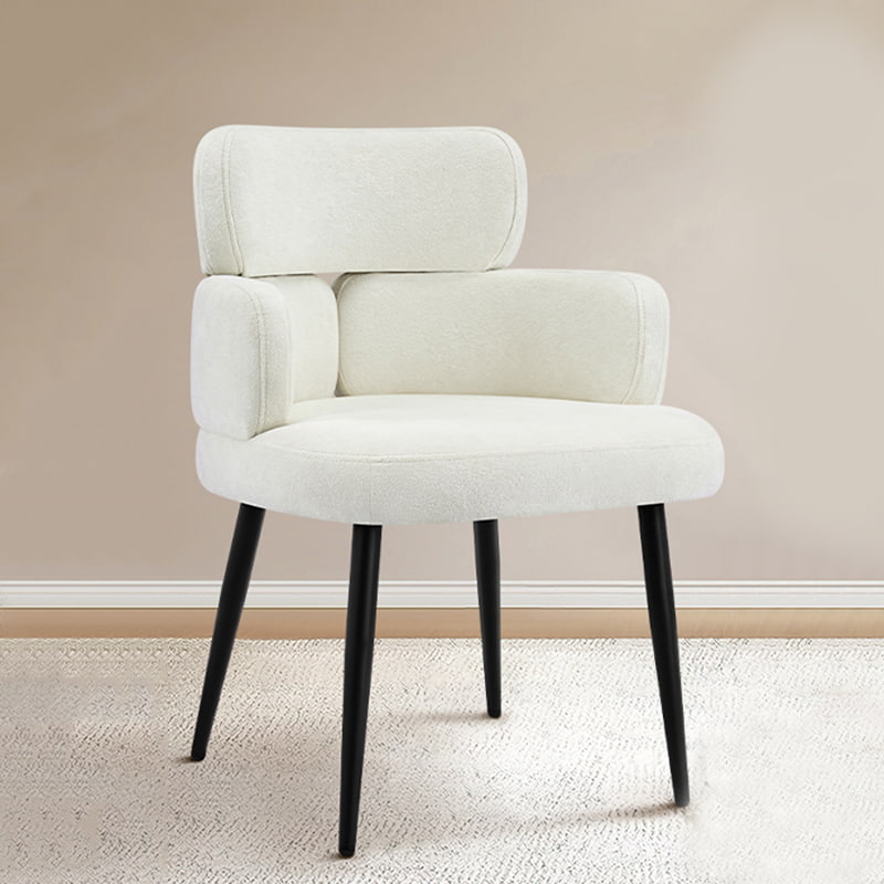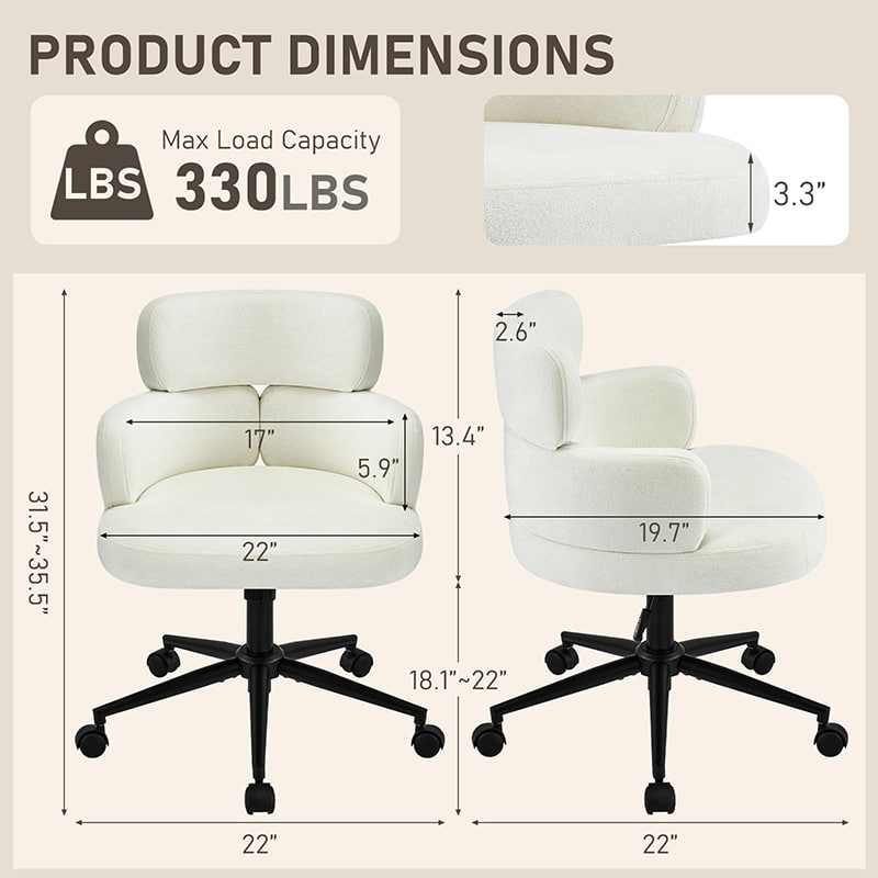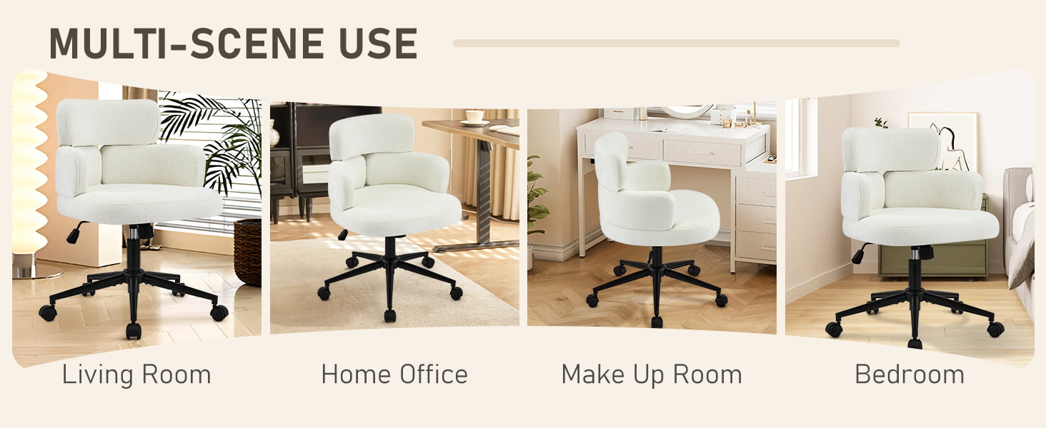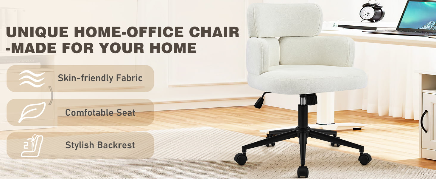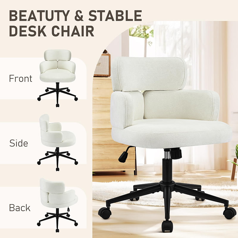 To tapicerowane obrotowe krzesło biurowe jest przeznaczone do nowoczesnych biur domowych, butikowych przestrzeni do pracy i wnętrz zorientowanych na styl życia. Krzesło to, wyposażone w charakterystyczne oparcie w kształcie koniczyny ze zintegrowanym podłokietnikiem, łączy w sobie atrakcyjność wizualną z funkcjonalną ergonomią. Szerokie, miękko wyściełane siedzisko obite przyjazną dla skóry tkaniną szenilową zapewnia miękkie i wygodne siedzenie podczas długich godzin pracy, czytania lub relaksu. Mechanizm regulacji wysokości, płynny obrót o 360 stopni i funkcja delikatnego bujania pozwalają użytkownikom z łatwością dostosować pozycję siedzącą, a solidna metalowa podstawa i ciche kółka zapewniają stabilność, mobilność i ochronę podłogi w różnych środowiskach.