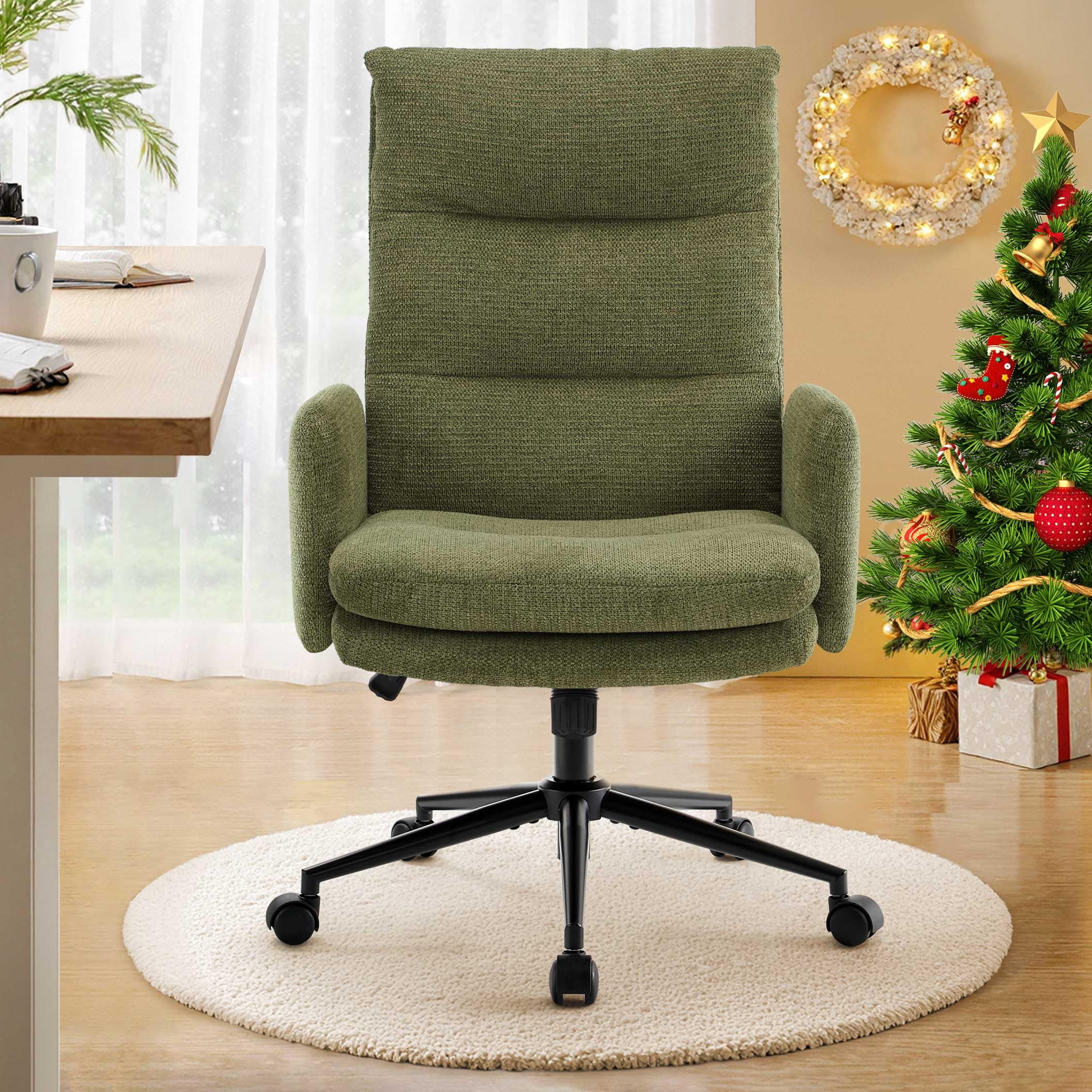 Krzesło biurowe z kaszmiru z wysokim oparciem, regulowaną wysokością, obrotową podstawą i grubą, podwójnie wyściełaną poduszką do domowego biura